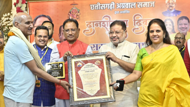 मुख्यमंत्री विष्णु देव साय राजधानी रायपुर में छत्तीसगढ़ी अग्रवाल समाज द्वारा दानशीलता दिवस पर आयोजित सम्मान एवं शपथ ग्रहण समारोह में शामिल हुए। उन्होंने इस दौरान छत्तीसगढ़ी अग्रवाल भवन में समाज द्वारा नवनिर्मित 200 सीटर ऑडिटोरियम का लोकार्पण और दान दाताओं का सम्मान भी किया।