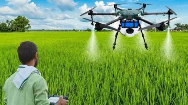 240 रुपये में एक एकड़ में ड्रोन से फसलों पर छिड़काव