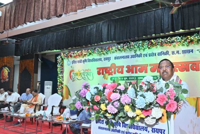 कृषि विकास एवं किसान कल्याण मंत्री श्री राम विचार नेताम ने आज इंदिरा गांधी कृषि विश्वविद्यालय के कृषि मंडपम में आयोजित चार दिवसीय राष्ट्रीय आम महोत्सव के समापन समारोह मे शामिल हुए। इंदिरा गांधी कृषि विश्वविद्यालय, रायपुर, संचालनालय उद्यानिकी एवं प्रक्षेत्र वानिकी, छत्तीसगढ़ शासन तथा प्रकृति की ओर सोसायटी के संयुक्त के संयुक्त तत्वावधान में आयोजित चार दिवसीय राष्ट्रीय आम महोत्सव का आज यहा समापन हुआ।