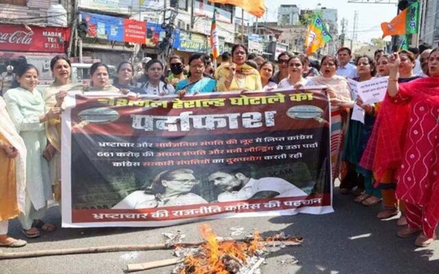 भारतीय जनता पार्टी (भाजपा) ने शुक्रवार को राजधानी दिल्ली में कांग्रेस के अकबर रोड स्थित मुख्यालय के पास नेशनल हेराल्ड मामले को लेकर जोरदार विरोध प्रदर्शन किया। भाजपा का आरोप है कि कांग्रेस ने जनता के पैसों का गबन किया है और इसे पार्टी नेताओं के निजी हितों के लिए इस्तेमाल किया गया। भाजपा की दिल्ली इकाई के अध्यक्ष वीरेंद्र सचदेवा के नेतृत्व में भारतीय जनता युवा मोर्चा (BJYM) के कार्यकर्ता मान सिंह रोड पर एकत्र हुए, लेकिन पुलिस ने उन्हें कांग्रेस कार्यालय की ओर बढ़ने से पहले ही रोक लिया।