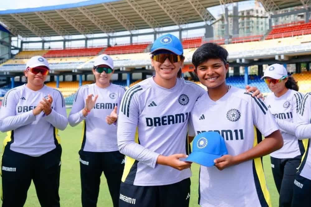 वूमेंस ट्राई नेशनल सीरीज 2025 का फाइनल मैच कोलंबो के आर. प्रेमदासा स्टेडियम में खेला गया. इस मुकाबले में भारतीय टीम की स्टार खिलाड़ी स्मृति मंधाना ने क्रांति को कैप देकर अंतरराष्ट्रीय क्रिकेट में डेब्यू कराया. कप्तान हरमनप्रीत कौर ने टॉस जीतकर पहले बल्लेबाजी का फैसला किया. मुकाबले में स्मृति मंधाना की 116 रनों की शतकीय पारी और हरलीन देओल (47), जेमिमा रोड्रिग्स (44) व हरमनप्रीत कौर (42) शानदार पारियों की बदौलत भारत ने 50 ओवर में 342/7 का विशाल स्कोर खड़ा किया.
