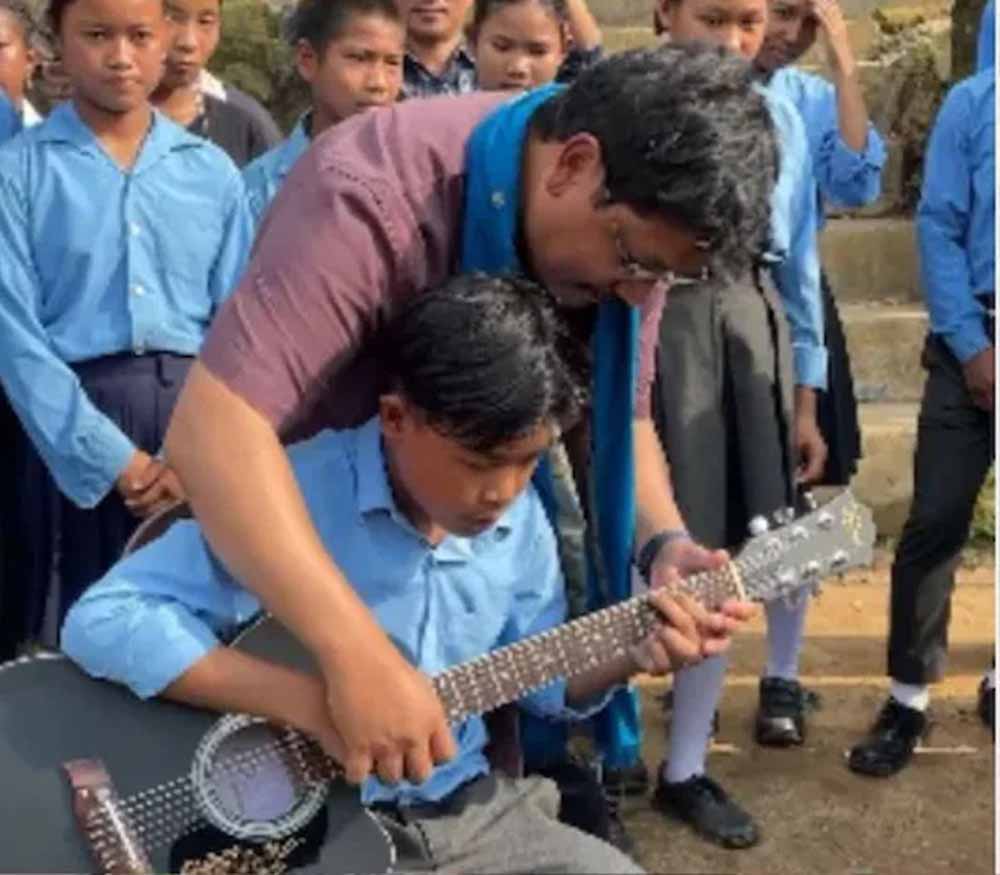 वीडियो शेयर करते हुए संगमा ने लिखा, जिरांग के नोंगस्पुंग-ए गांव में एक छात्र गिटार बजाने की कोशिश कर रहा था, इसलिए मैंने वहां के स्कूल को एक गिटार भेंट किया। वह अभी शुरुआती स्तर पर है, लेकिन मुझे विश्वास है कि जब उनके नए स्कूल भवन का उद्घाटन होगा, तब वह अच्छे से गिटार बजा पाएगा.