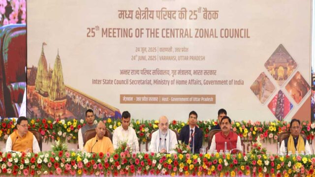 उत्तरप्रदेश के वाराणसी में आयोजित मध्य क्षेत्रीय परिषद की 25वीं बैठक