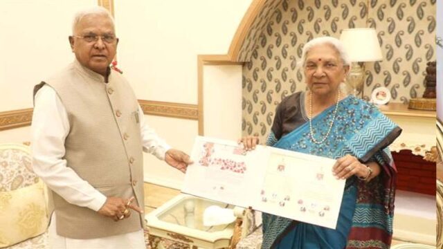 राज्यपाल पटेल ने सिकल सेल जागरूकता के लिए राजभवन मध्य प्रदेश की पहल पर डाक विभाग द्वारा जारी विशेष आवरण राज्यपाल उत्तर प्रदेश श्रीमती आनंदीबेन पटेल को भेंट किया। राज्यपाल मंगुभाई पटेल का राज्यपाल उत्तर प्रदेश श्रीमती आनंदीबेन पटेल ने पुष्पगुच्छ भेंट कर अभिनंदन किया।