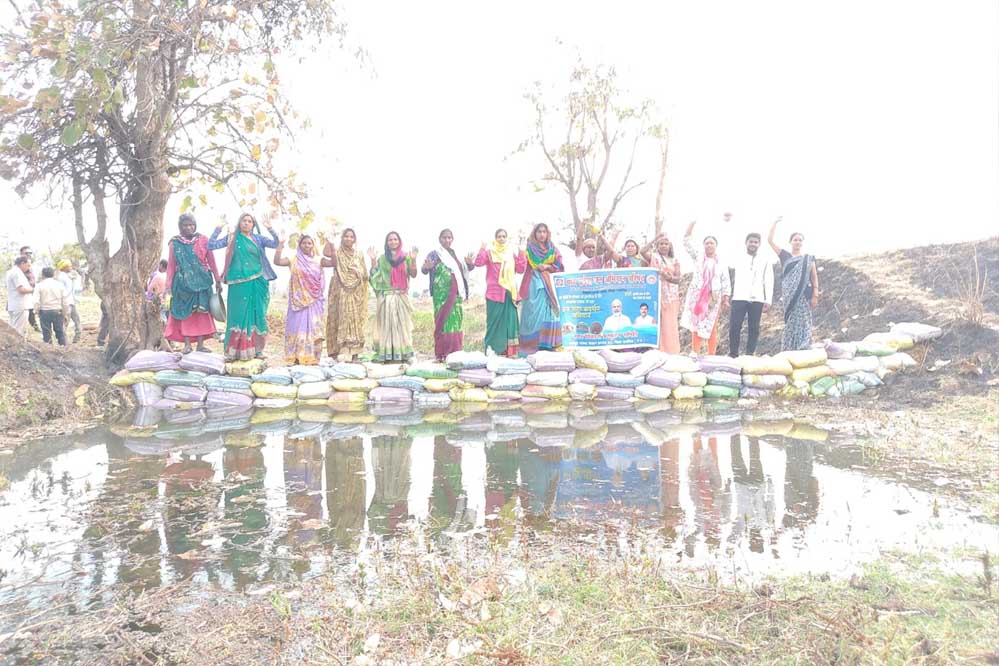 उमरिया जिले में अपनी मिट्टी अपना जल को संरक्षित करने हेतु जन सहयोग के माध्यम से बोरी बंधान के कार्यक्रम आयोजित किए जा रहे है। सुंदरदादर के आमा घाट मे 180 बोरियो का बोरी बंधान किया गया।