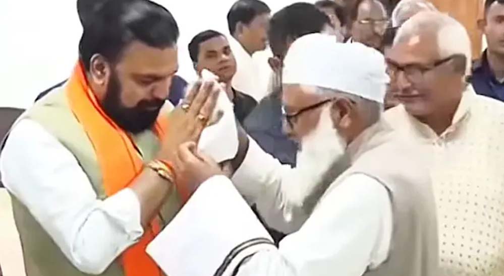 मुख्यमंत्री पद की शपथ लेने के बाद एनडीए के कई नेता सम्राट चौधरी से मिलने पहुंच रहे हैं. हाल ही में जनता दरबार के दौरान कई लोग उनसे मिलने पहुंचे. सम्राट से मुलाकात के दौरान लोगों ने अलग-अलग तरीके से उनका स्वागत किया. किसी ने फूल-माला पहनाई तो किसी ने शॉल ओढ़ाकर सम्मान दिया. इसी बीच मुस्लिम समुदाय के एक प्रतिनिधि ने उन्हें टोपी पहनाने की कोशिश की, लेकिन मुख्यमंत्री ने टोपी पहनने से इनकार करते हुए उसे हाथ में ले लिया और गमछा ओढ़कर सम्मान स्वीकार किया. बाद में उन्होंने टोपी पीछे खड़े गार्ड को दे दी. वीडियो में दिखता है कि व्यक्ति बार-बार टोपी पहनाने की कोशिश करता है, लेकिन सम्राट चौधरी ने उसे नहीं पहना. हालांकि, उन्होंने उसी व्यक्ति का गमछा स्वीकार किया।