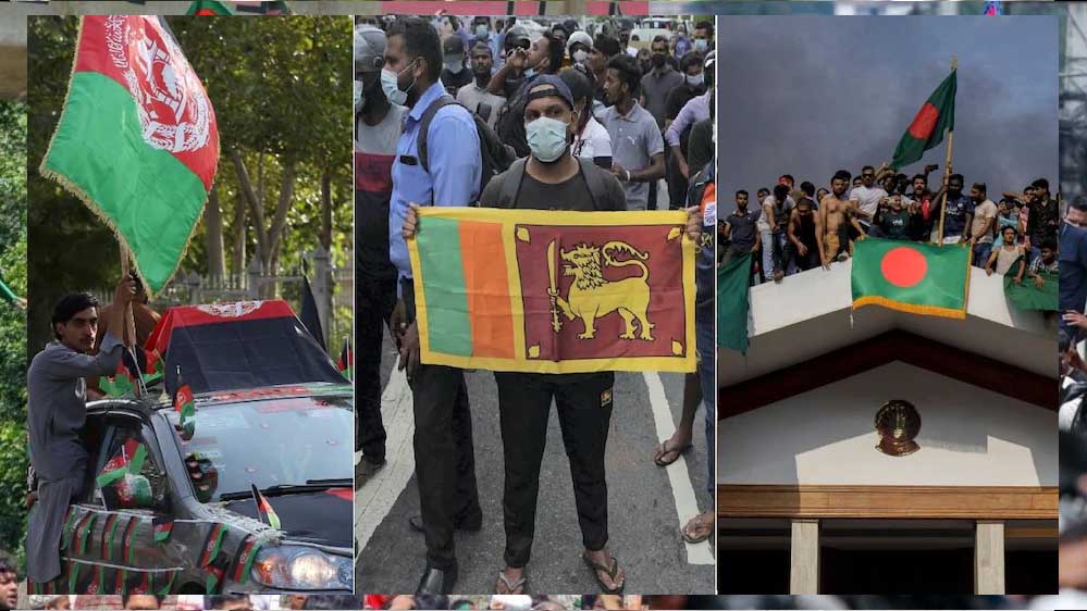 अफगानिस्तान के संकट के ठीक एक साल बाद, 2022 में श्रीलंका आर्थिक तूफ़ान की चपेट में आ गया। महंगाई, ईंधन और दवाइयों की किल्लत ने राजधानी कोलंबो की सड़कों को जलते हुए अंगारों में बदल दिया। लाखों लोग प्रदर्शन के लिए सड़कों पर उतर आए, राष्ट्रपति गोटाबाया राजपक्षे को रातोंरात देश छोड़ना पड़ा और प्रधानमंत्री महिंदा राजपक्षे ने इस्तीफा देना पड़ा। विरोध इतना उग्र था कि राष्ट्रपति भवन और संसद तक प्रदर्शनकारियों के कदमों की आवाज गूंज उठी।