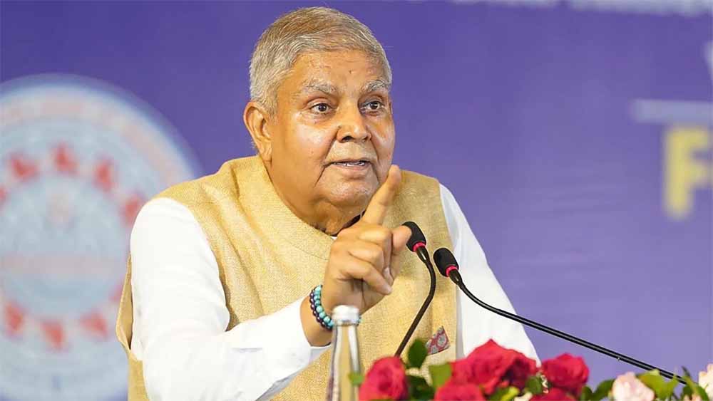 धनखड़ की यह टिप्पणी ऐसे समय में आई है जब विपक्ष अमेरिकी राष्ट्रपति डोनाल्ड ट्रंप के हालिया भारत-पाकिस्तान झड़प में ‘संघर्ष विराम’ कराने के दावे पर सरकार से स्पष्टीकरण की मांग कर रहा है। उन्होंने यहां भारतीय रक्षा संपदा सेवा के प्रशिक्षुओं के एक समूह को संबोधित करते हुए कहा कि बाहरी नैरेटिव्स से निर्देशित न हों। इस देश में, एक संप्रभु राष्ट्र में, सभी निर्णय इसके नेतृत्व द्वारा लिए जाते हैं। दुनिया में ऐसी कोई ताकत नहीं है जो भारत को यह निर्देश दे कि उसे अपने मामलों को कैसे संभालना है।